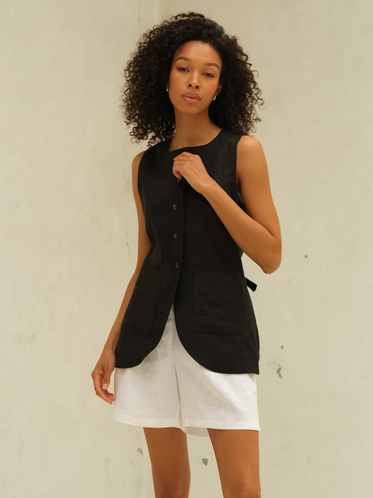 Używamy wyłącznie wysokiej jakości certyfikowanego lnu, wybranego ze względu na jego przewiewność, trwałość i naturalne nieregularności, które czynią każdy egzemplarz subtelnie unikalnym. Niezależnie od tego, czy to dopasowany bezrękawnik, zwiewna spódnica czy luźne spodnie — sylwetka zawsze jest przemyślana, a fason dopracowany.